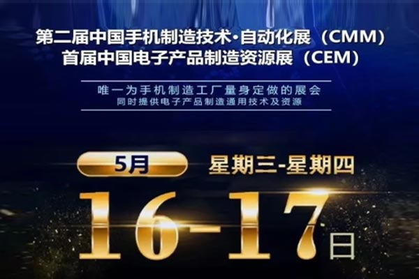 2018年5月16日,第二屆中國手機制造技術自動化展在東莞廣東現代國際展覽中心3號館B/C/D區盛大舉行。本次大會由惠州智能終端制造協會主辦,廣東惠智協展覽有限公司協辦,展品最多,品類最齊全的手機制造技術專業展會,展示了最全面的制造技術發展趨勢。