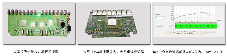優(yōu)越的溫控性能和獨(dú)特的加熱裝置,保證屏蔽蓋與BGA之間的溫差>30℃以上,避免二次熔錫(屏蔽蓋返修蓋內(nèi)BGA錫球溫 度低于200℃)